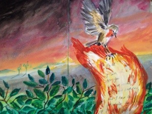 “The Fiery Letter To You “. Speedily drawn in watercolour and pen in a sketchbook 2013