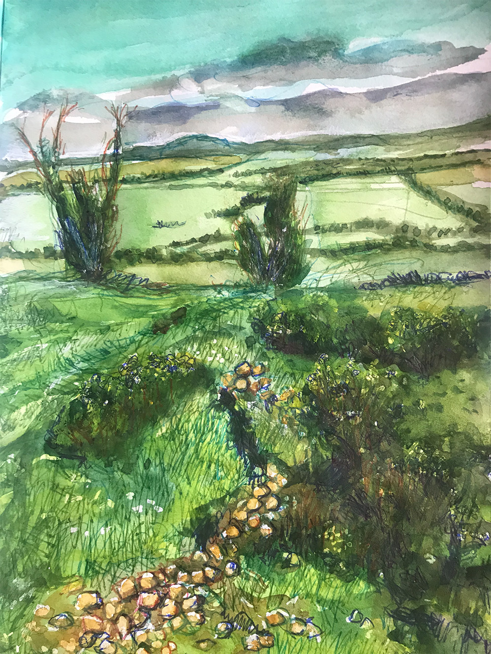“The Hollow” ( left by the explosion of Black 47) watercolour and tippex
