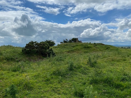 Nothing I have read mentions the most interesting aspects of Cnoc Áine. To my eye, on the way up on this approach from the Mitchell Home there is a wide stone in the field which no doubt had some place in the original complex surrounding the hill, it looks strikingly like the back of horse lying in the grass with its hind quarters apparent. Maybe this was associated with the famous Red Mare the form in which Áine might appear and use to allow the goddess to wander the fields and meadows of the lands associated with her. It is an intriguing rock form in any case. I Imagine it was a great deal more important in its hey day.