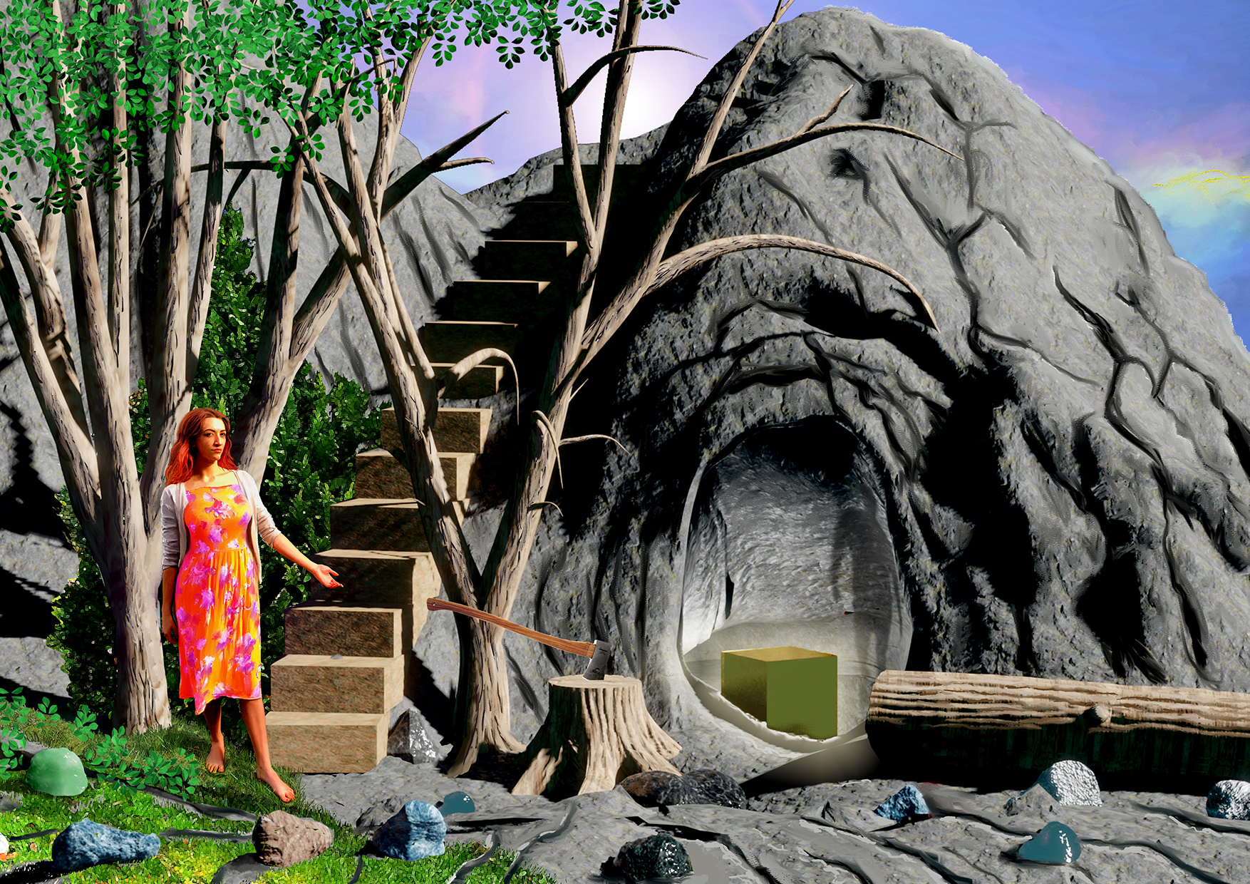 The First Painting: She Shows The Way There a scene made as if on a moon of another distant occupied planet. She leads you the cave Wherein your past is laid written on the walls of your self. Ashen coloured interior Sins and misdemeanours Wrongs all outlayed. Ashamed of a sin which you tried to pound into the dust , crushed bone Mixed with oils of regret In the hearth of the fireplace. To hide as pigment smeared in the recess. Confused by other graffiti It must be singled out with care And offered up To Her. The Judas Kiss. Only then can come The first release…. For the prisoner from the mindset The spirit from the body kept. Set upon the cornerstone. to be built upon the journey home.