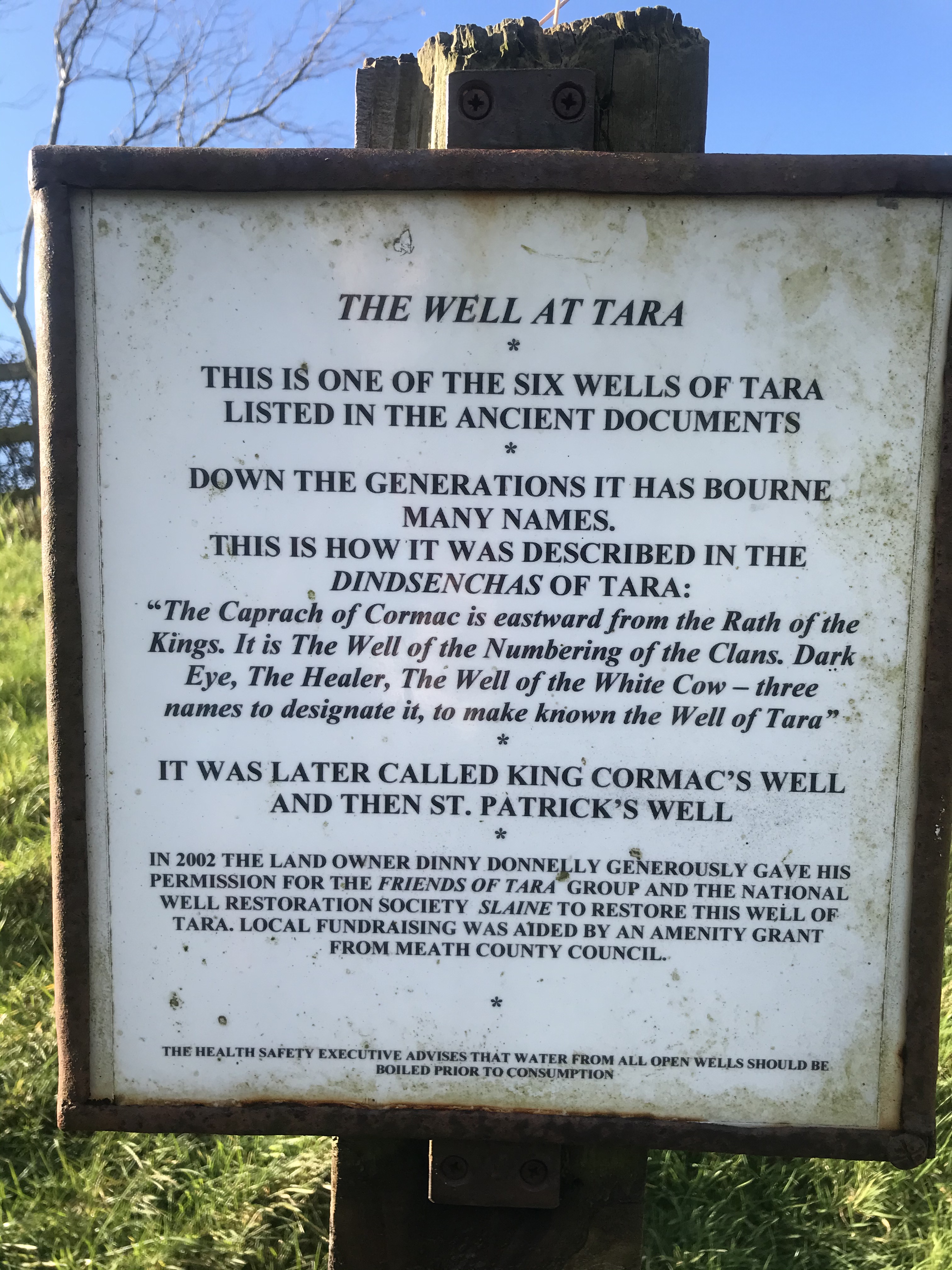 The ancient wells of ireland having sacred, life renewing and healing properties are traits that goes back to its pre christian designations. It is another example of the smooth transition between paganism and christianity . The different names that continue into modern use for The Well of Tara , such as The Well of The White Cow (another image of life giving sustenance ) or even the title “Dark Eye” (perhaps hinting at a possible cure for blindness ) tell of modern day belief in its powers. The White Cow is another name for Boann. The Goddess of The Boyne River which is nearby . I will cover this connection in much more detail in part 2 of this 4 part series.