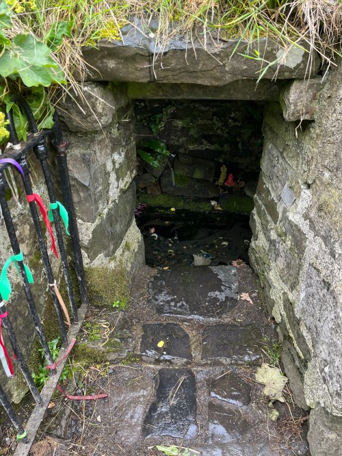 The well at Tara is just one of many thousands 2996 of wells across southern Ireland and 187 officially recognised in Northern Ireland (probably much more there than that) . Many, if not all of them were originally part of pagan sites where often the goddess of that area was remembered in association with whatever healing property the well had. Here is another easy alignment between the celtic beliefs of the past and the beliefs of early christianity. Because almost all of these wells that I have ever come across, are now named after christian saints or figures . Often they are named after saint Brigid whose own story is intermingled with that of the Irish Goddess Brigit. Of course some are named after Our Lady, others after St Patrick and so on. The importance and the sacredness of water within celtic and Grail legends show a preoccupation with its image as a substance that in some way may transmit Grace through healing or favours granted. To this day the practice of tying a piece of cloth belonging to the person requesting the favour is still carried out at these sites as can be seen in the photo here.